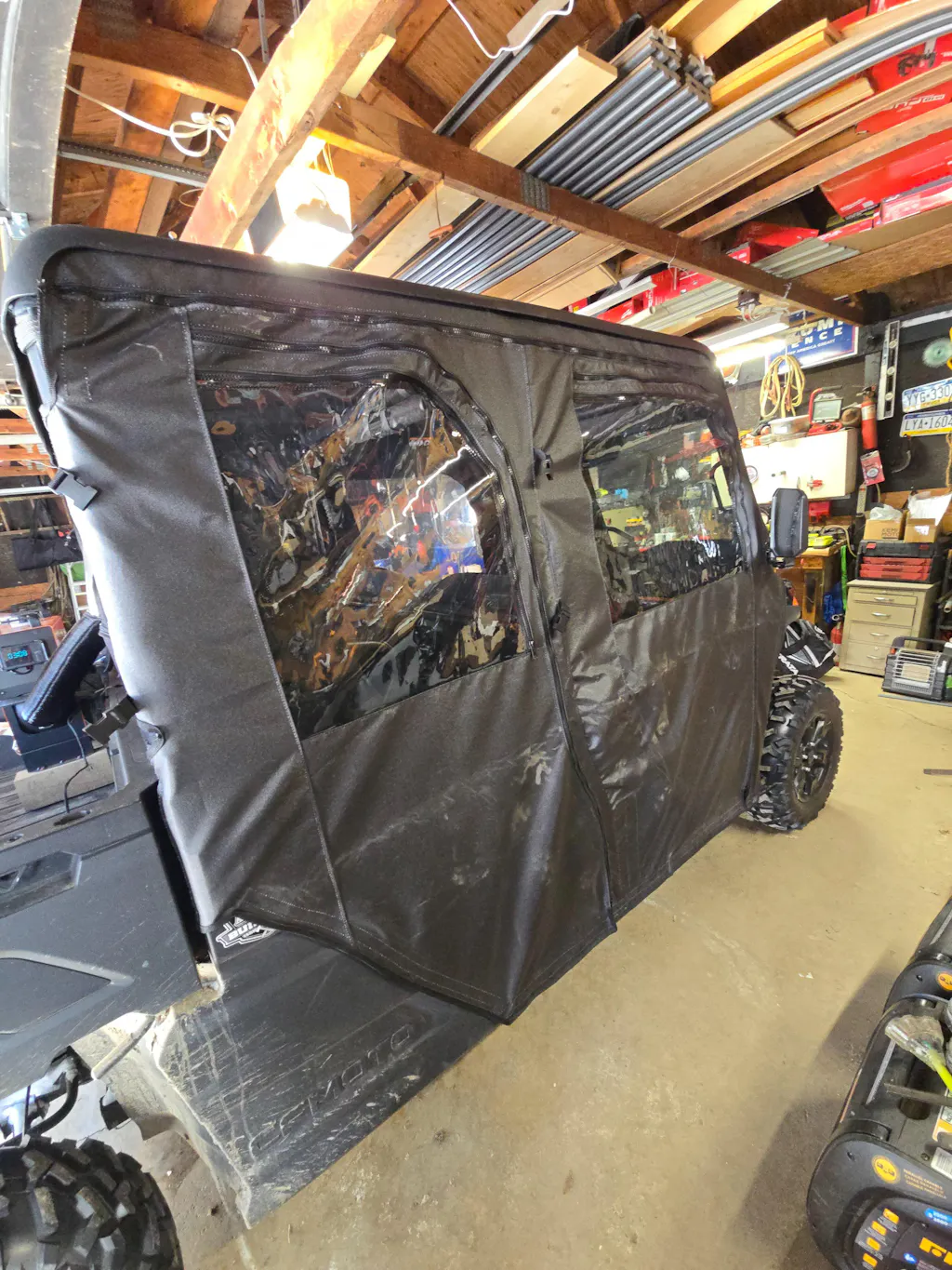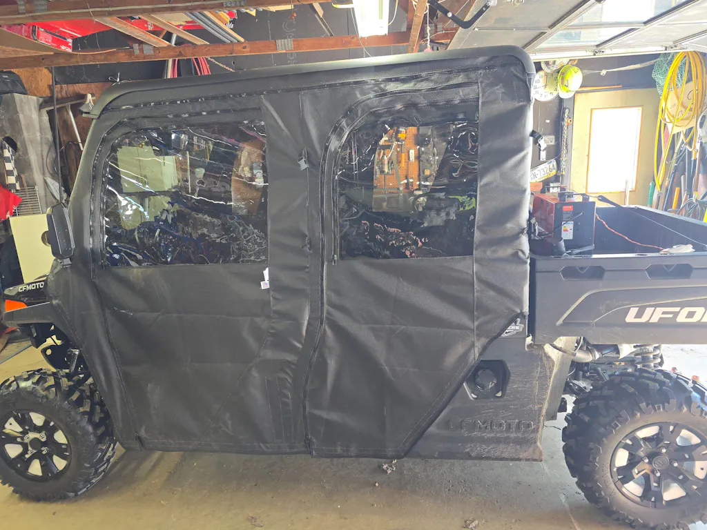 Putting them on for the first time was a learning curve. The instructions aren't great, and there's not much info online for this model. It's a new model, but we figured it out. I like them, and I think they're the best option for this model right now, especially compared to the only other thing I know of, which are the hard half doors CF Moto makes that cost like $4k for four. These were way cheaper at about $800 for all four. The downside is they're zipper doors, so it's a bit of a hassle getting in and out. And they're still pretty expensive for just canvas doors, but nothing in this hobby is cheap, I guess. Other models have much cheaper options that are similar to these, though. I think it's just because this is the first year for this model. The only other downside was that I ordered them in early November and didn't get them until about a week or two ago, in mid-January. But they're made in America, and I love supporting small businesses. They're good quality.